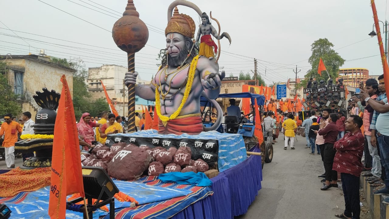 वहीं युवक जय श्रीराम के जयकारे लगाते रहे। शहर के हर गली-और चौक चौराहों पर केसरिया झंडे, तोरण से मााहौल भक्तिमय हो गया। आकर्षक झांकियों में भगवान श्रीराम आगे-आगे चलते रहे। वहीं उनके भक्त हनुमान भी इस नजारे को देखकर श्रीराम की भक्ति में झूमते नजर आए। शोभायात्रा का जगह-जगह स्वागत हुआ और शहरवासी उमंग और उत्साह में सराबोर दिखे।